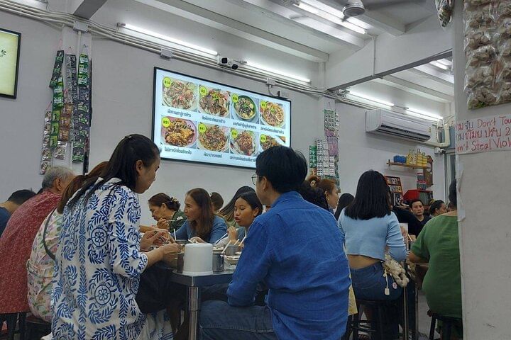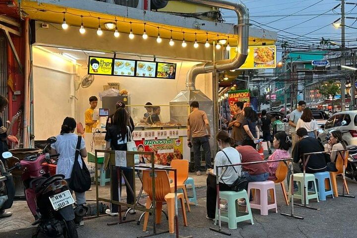 Banthat Thong Road has transformed from an area of automobile spare parts shops into must-visit destination for food lovers,with affordable price and diverse options of Thai street food and fusion food. We start from the main street and our guide will show you through small alley. After Food tasting 2-3 dishes by the road like a local, we'll have sharing Thai set menu at a sit-down restaurant, which guide help making table reservations. Tour ends at an iconic rooftop restaurant offers magnificent views of the Chao Phraya River. Enjoy cool breeze by the river while sipping your included drink.