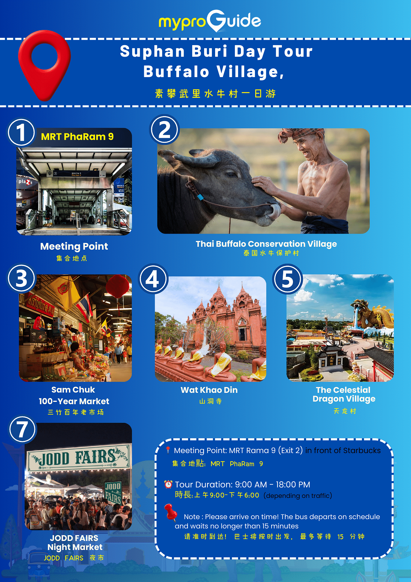 Discover the beauty of Suphan Buri on a full-day tour, where you'll encounter buffalo, visit the oldest market, and explore a charming Chinese-style village.