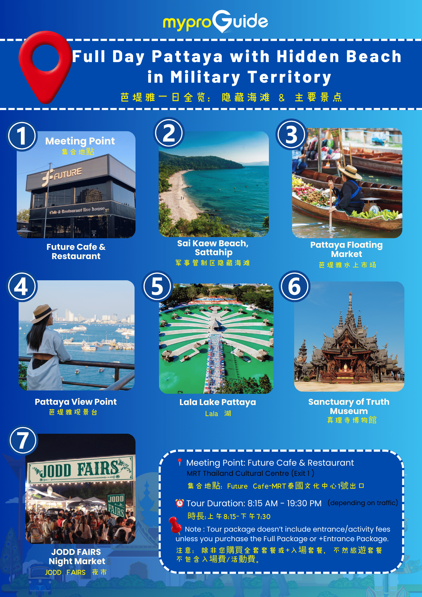 Hit floating market & brand-new destination, Lala Lake cafe. End your day in Pattaya at stunning Sanctuary of Truth!