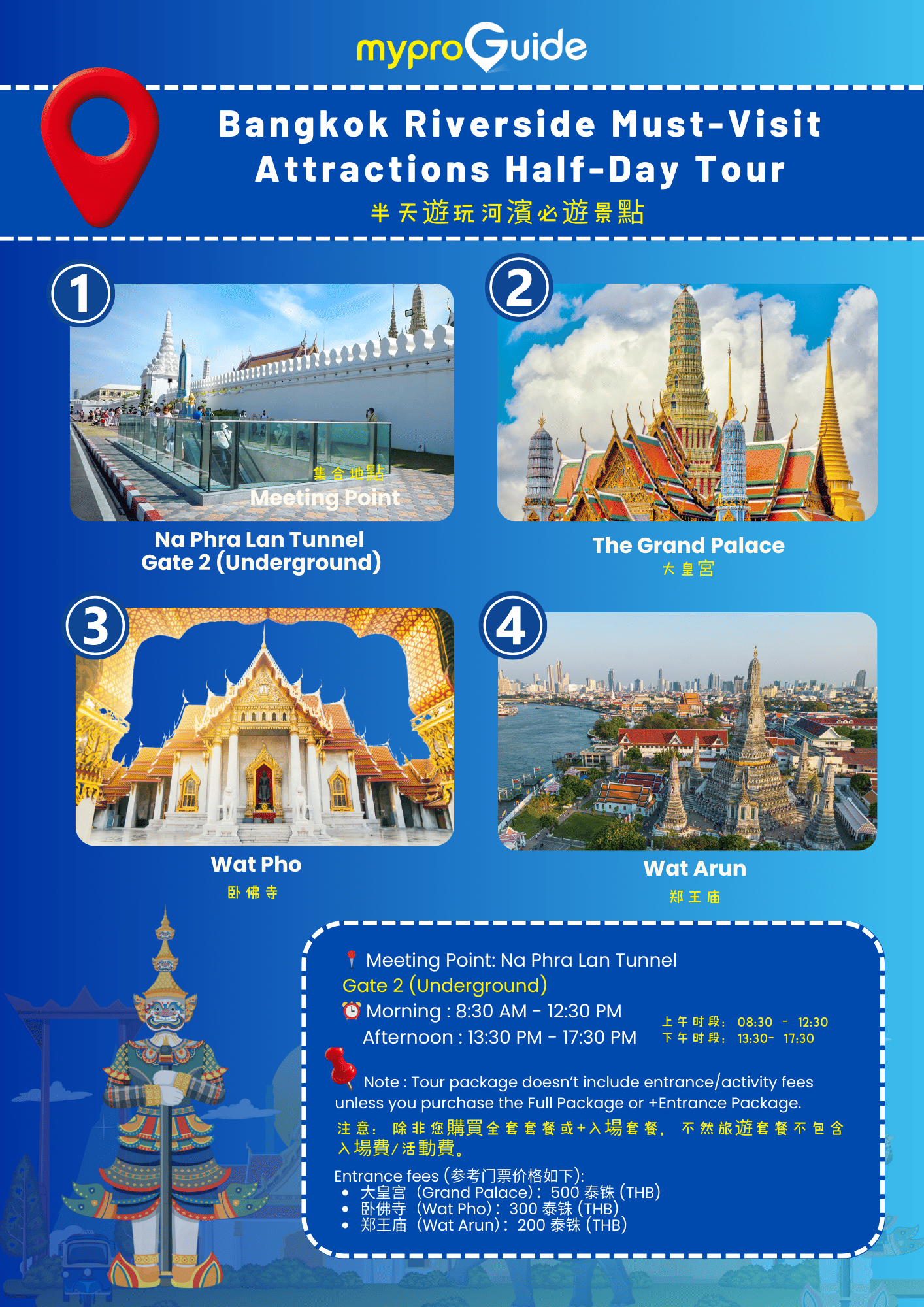 Explore Bangkok's riverside gems: the Grand Palace, Wat Pho, and Wat Arun. Admire the stunning architecture of the temples and The Grand Palace, learn about Thai history and culture from your knowledgeable guide, and capture memorable photos at Instagram-worthy spots.