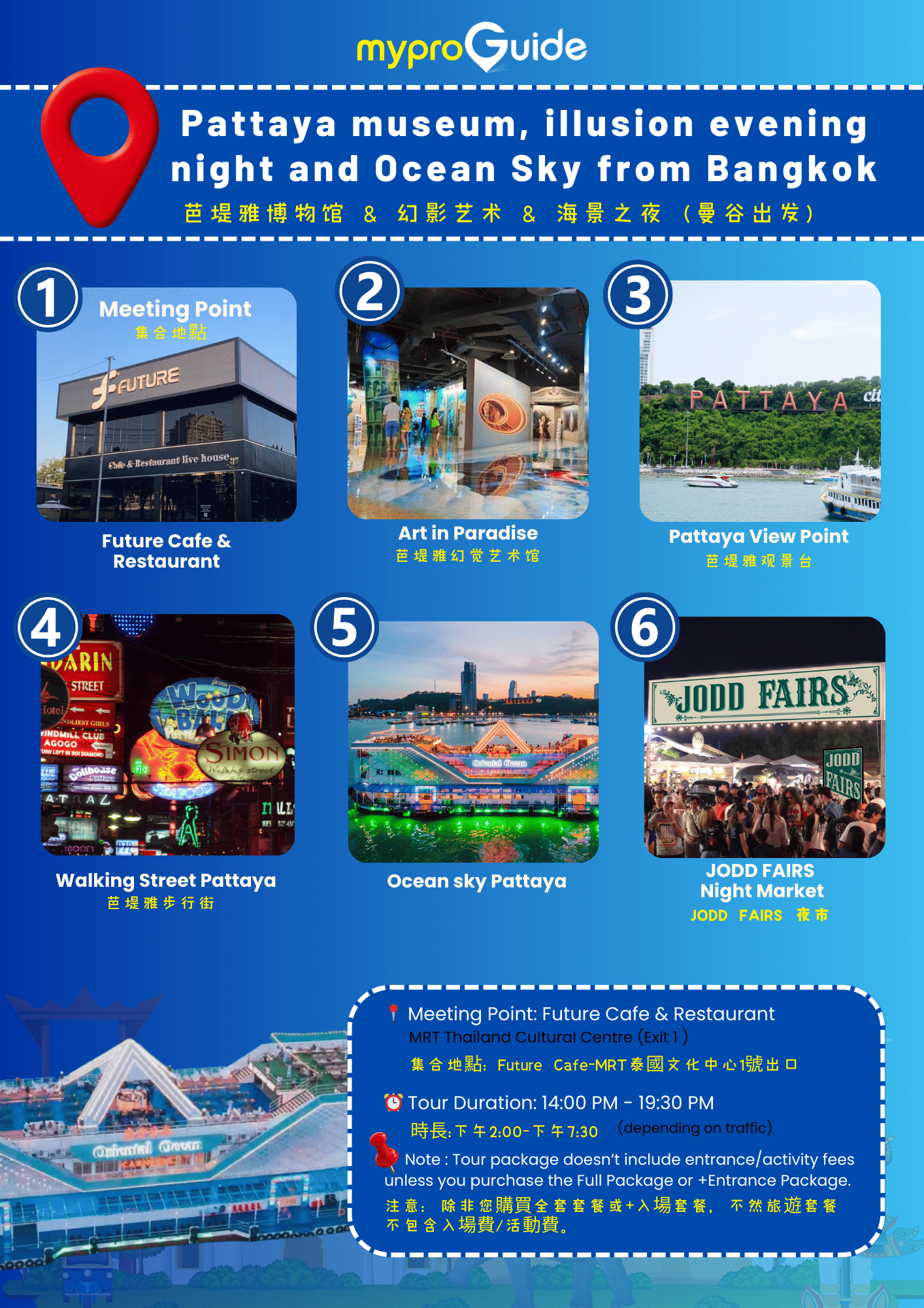 Pattaya museum, illusion evening night and Ocean Sky from Bangkok