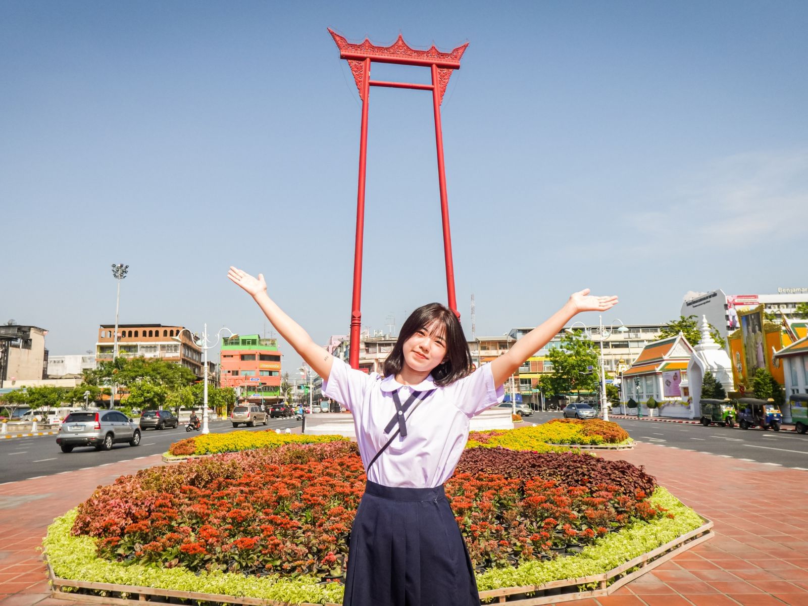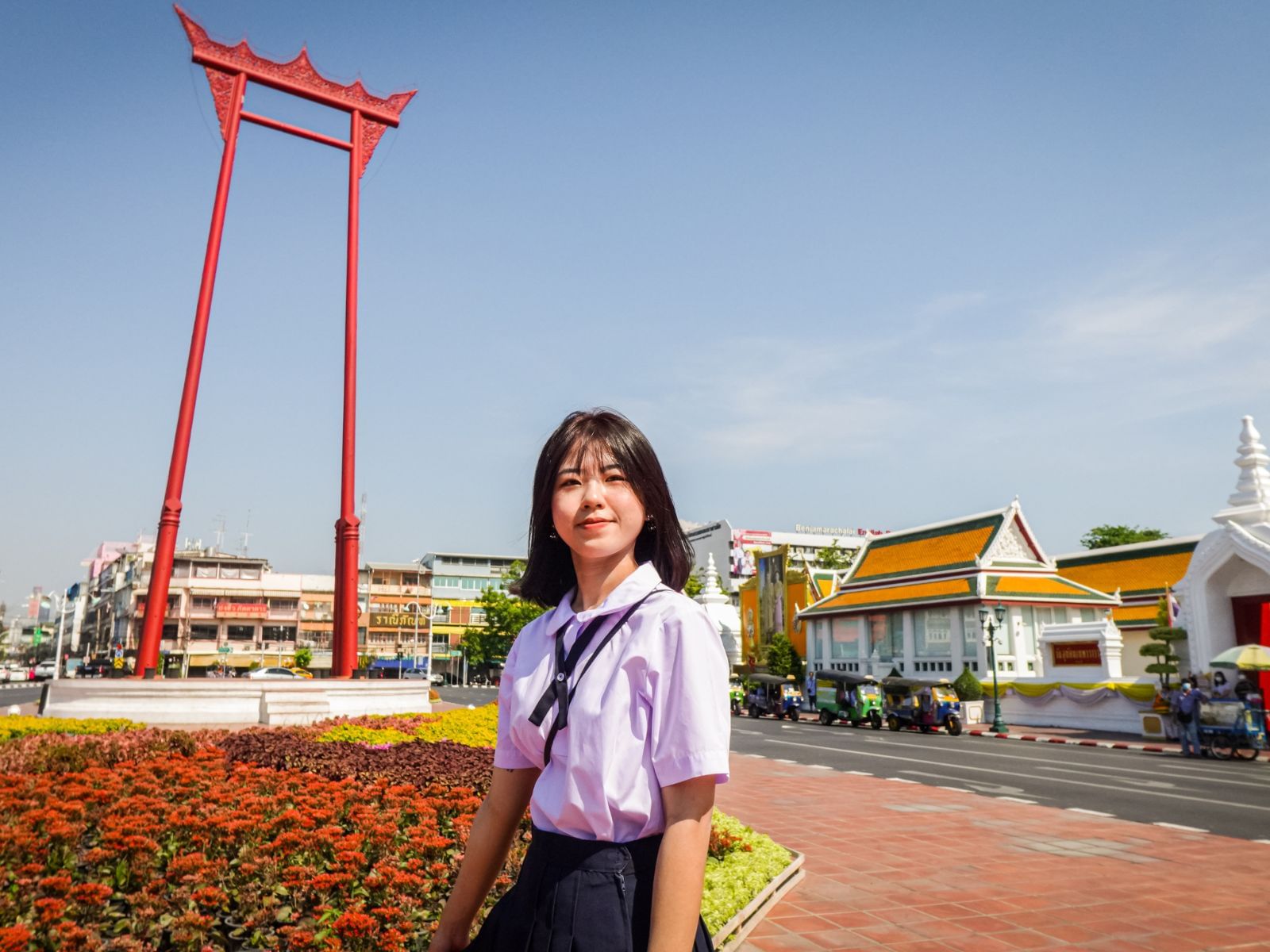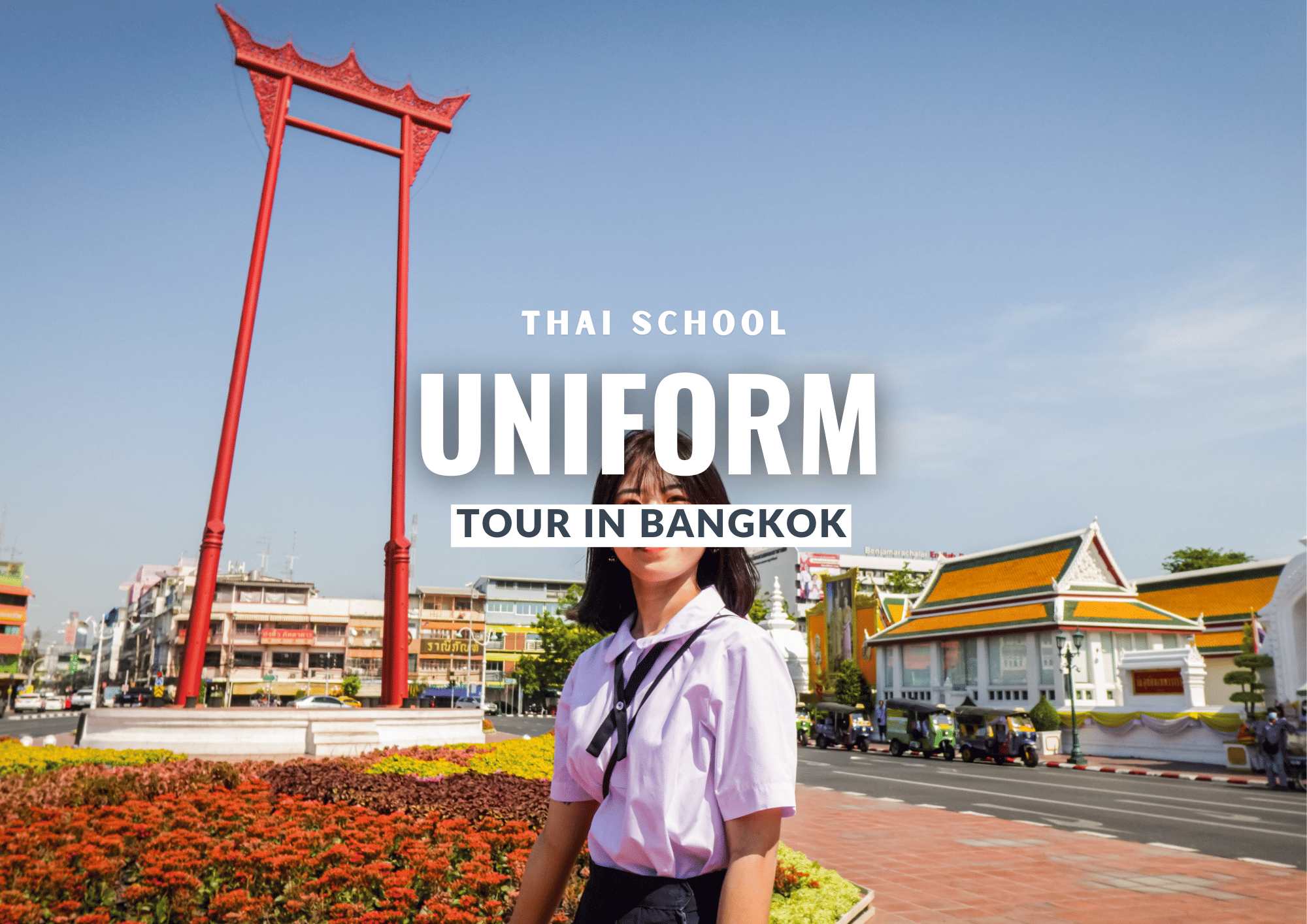 Dress up in trendy Thai school uniform outfits while exploring famous sights of Bangkok