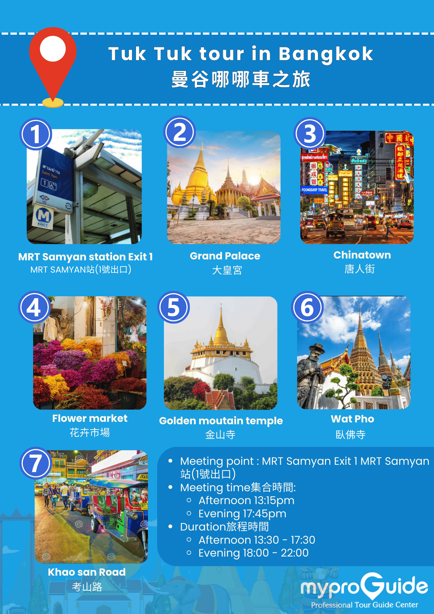 This program selected one of the most famous transportation as a local for variety of iconic places that you should not miss if you are in Bangkok; regardless of your religious temple, you will enjoy seeing the beauty of the buildings and how locals pray in temples. In addition, we will take you to the Chinese community settlement of Yaowaraj (China Town), the 24 hours flower market, The Grand Palace and Wat Po (Giant Reclining Buddha) and last stop at the most busiest street of the backpacker tourist at Khaosan road.